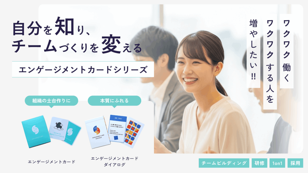 新商品の「エンゲージメントカード ダイアログ」は、全54枚の問いカードを用いて、1on1やチームビルディング、研修や朝会などの場で活用可能。表面的な雑談にとどまらず、価値観や経験にふれる“深い対話”を自然に引き出し、組織の信頼関係や多様性を尊重する文化づくりをサポートし、「1on1が表面的な会話で終わってしまう」「チームの空気がかたい」「打ち解けるのに時間がかかる」